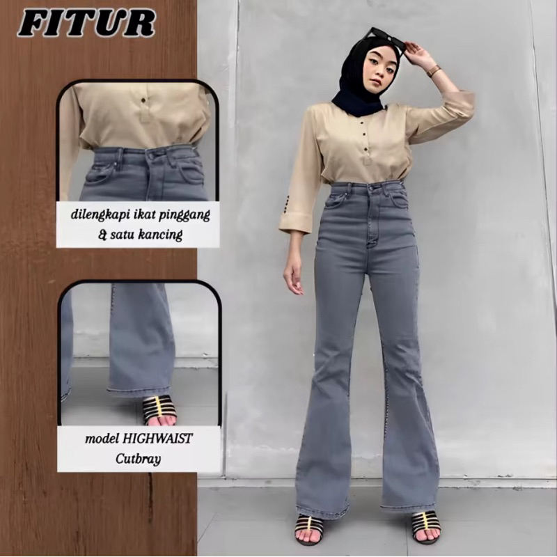 Rilands.id Celana Jeans Cutbray Wanita Highwaist Street Loose Melar Premium Kekinian Terbaru