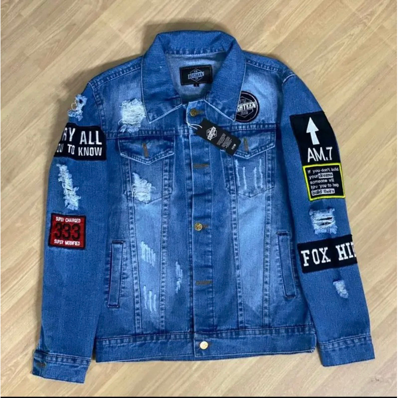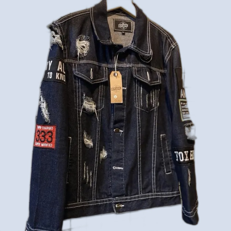 JACKET JEANS DENIM MOTIF SOBEK HIP HOP JEANS COWOK EMBELM