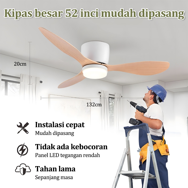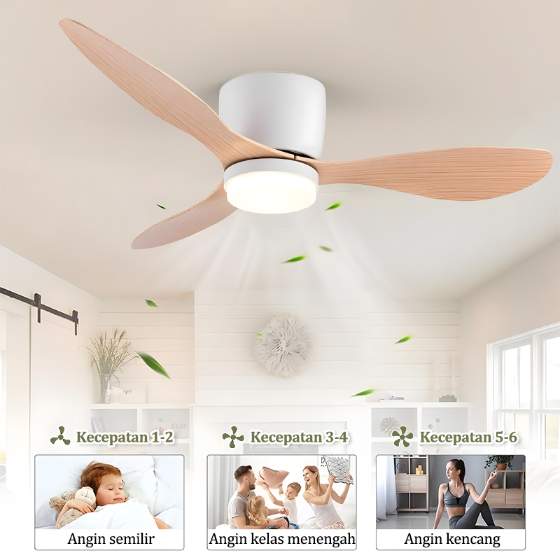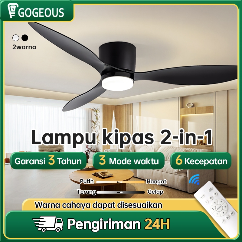 Gogeous Kipas Lampu Gantung Plafon 2In1 3 Warna Lampu Kipas R Tamu Nordik Berdaun Tiga Motor Dc Senyap Lampu Kipas Angin