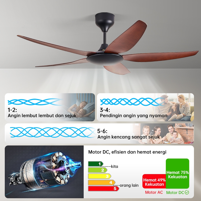 Gogeous Kipas Angin Gantung Plafon 52Inci Kipas Langit-Langit Baling Hias Nordik Dengan Remote Control Ceiling Fan R Mak