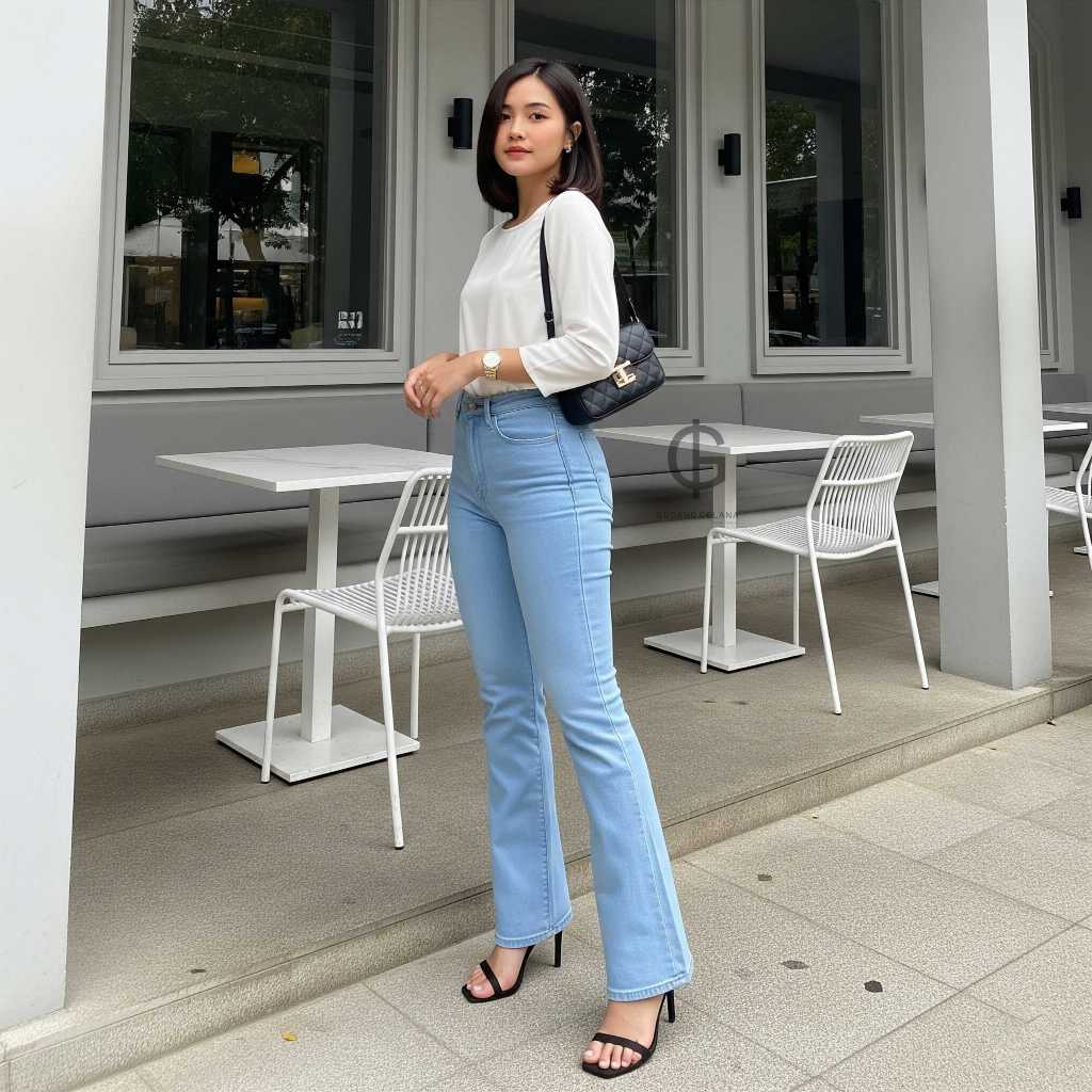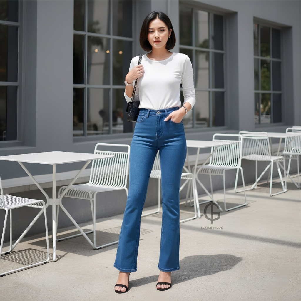 Highwaist Jeans Tebal Cutbray Loose Wanita Celana Panjang Hitam Snow Black Cewek Melar