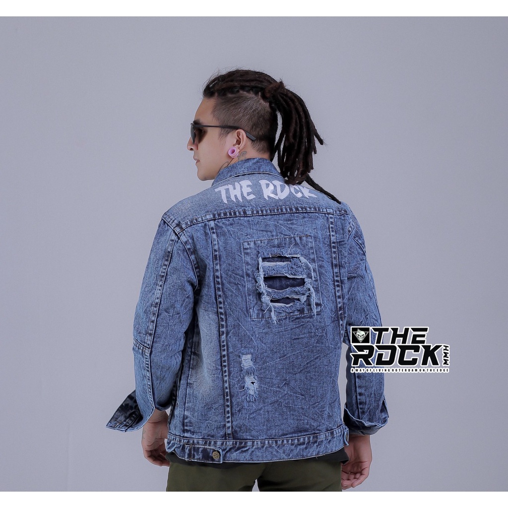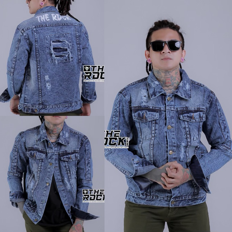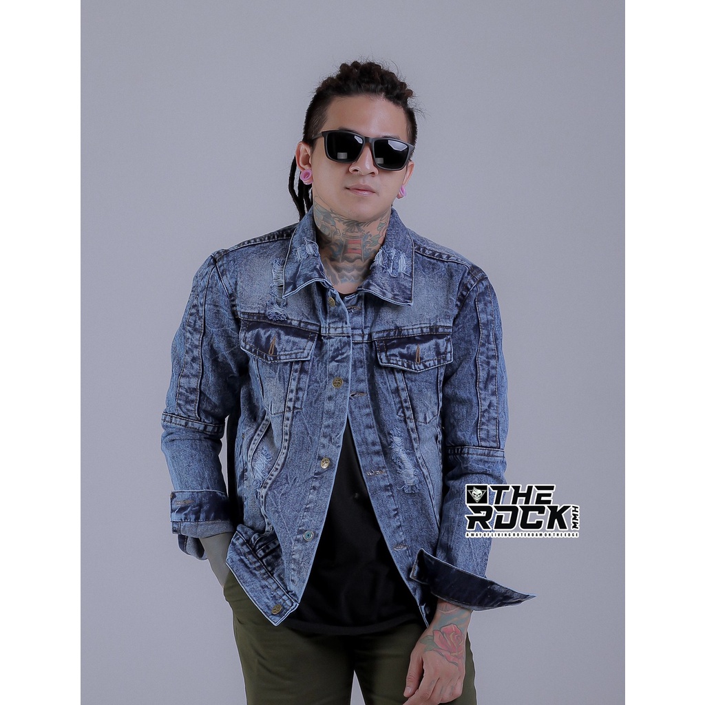 TANS - Jaket Denim Kerah Sanwash Sobek Ripped Slimfit Cowok Original The Riddick