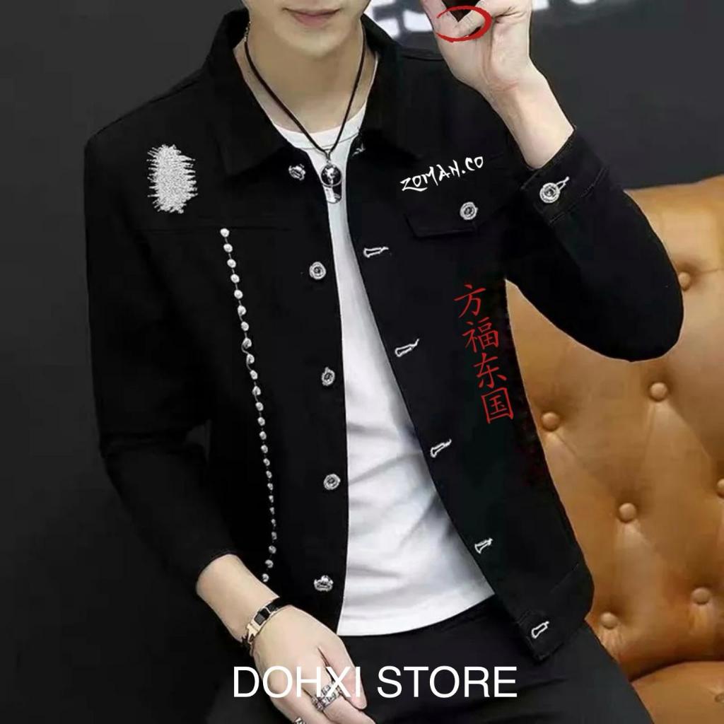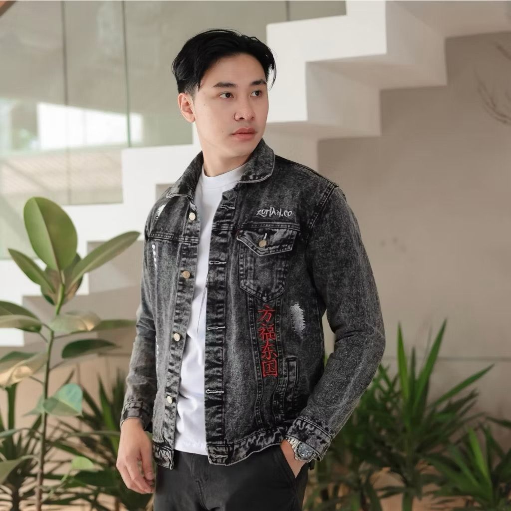 Jaket Jeans Denim Hitam & Hitam Sandwash | Jaket Jeans Korean Style Motif Full Bordir Terbaru