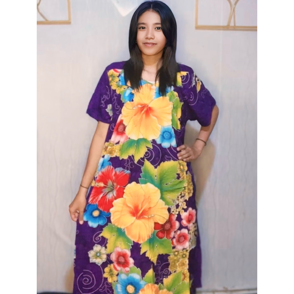 Daster Kencana Ungu Original Label Biru Oversize Lengan Pendek Wanita Kekinian Bahan Rayon Premium