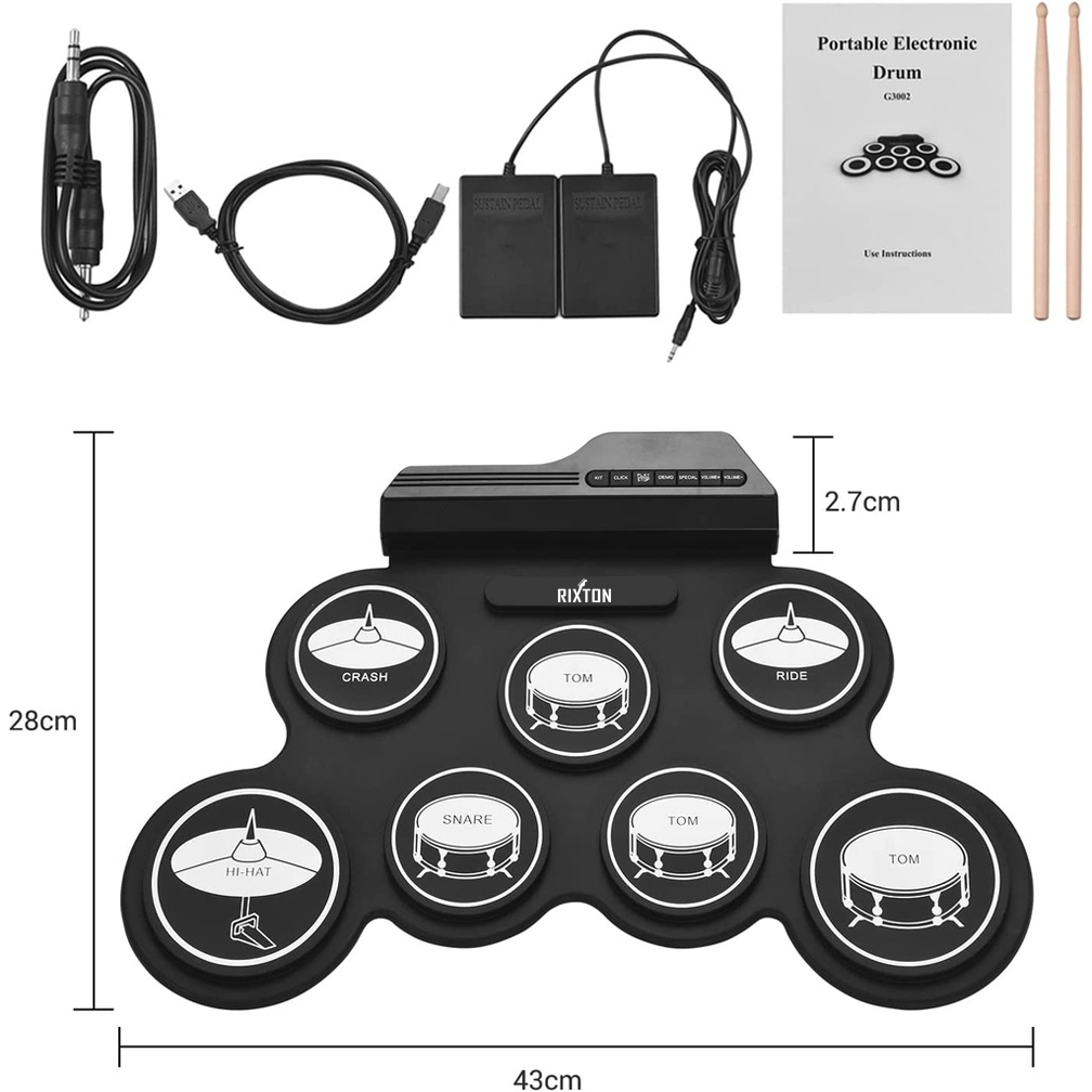 RIXTON Digital Portabel Drum Roll Drum Elektronik Perkusi Portabel Silicone Hand Roll Drum Kit Drum Jazz USB Elektronik