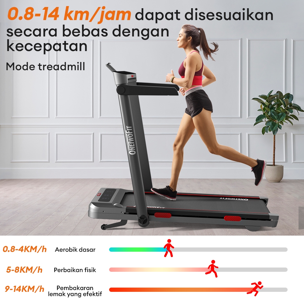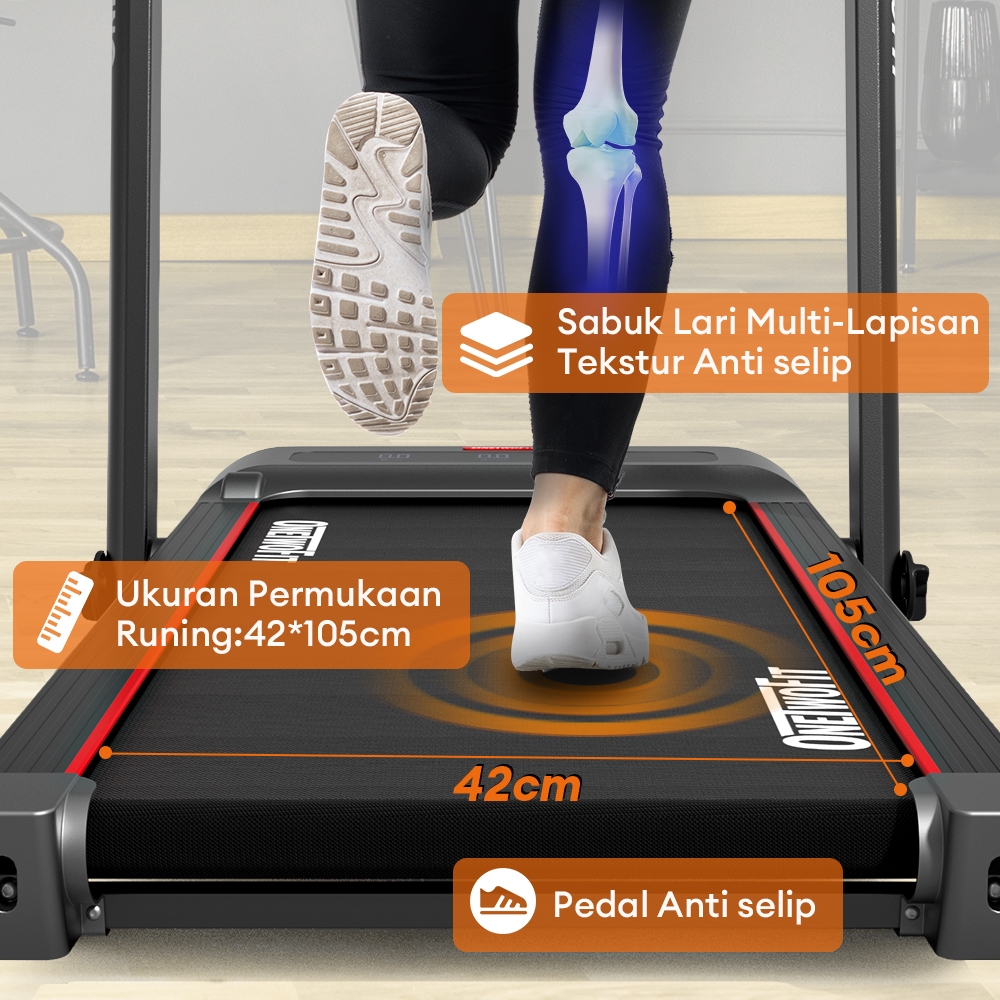 OneTwoFit Treadmill Elektrik Alat Fitness Treadmill Listrik 3.0HP Auto Incline Multifungsi Treadmill Folding Treadmill Alat Olahraga