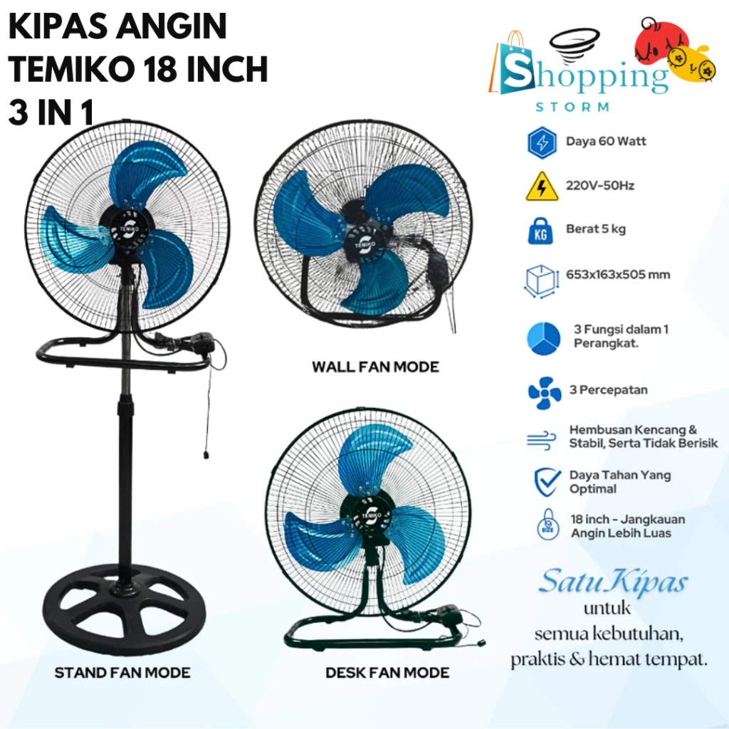 Kipas Angin Tornado Besi 3In1 18Inch Kipas Berdiri Meja Dinding/Tembok - Y 1808