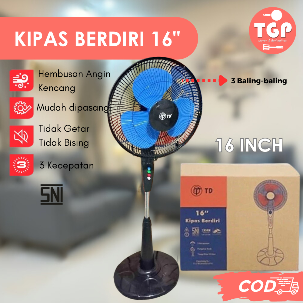 Kipas Angin Berdiri 16 Inch 3 Kecepatan Adjustable Terlaris Standfan Tdpendingin Ran