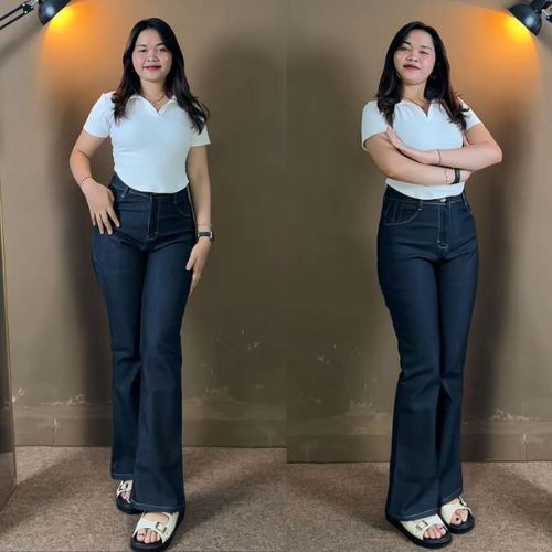 Celana Jeans Cutbray Wanita Garment Stret Highwaist Melar