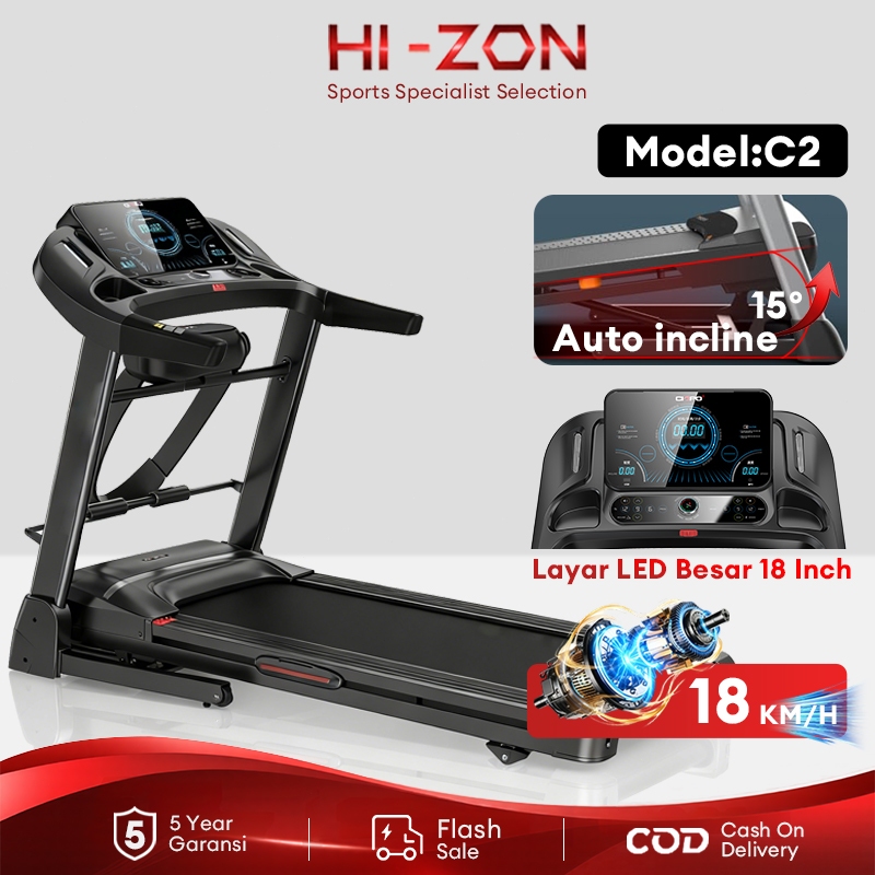 HI-ZON /Treadmill Portable C2 Kemiringan otomatis incline Dasbor digital Treadmill electric low watt
