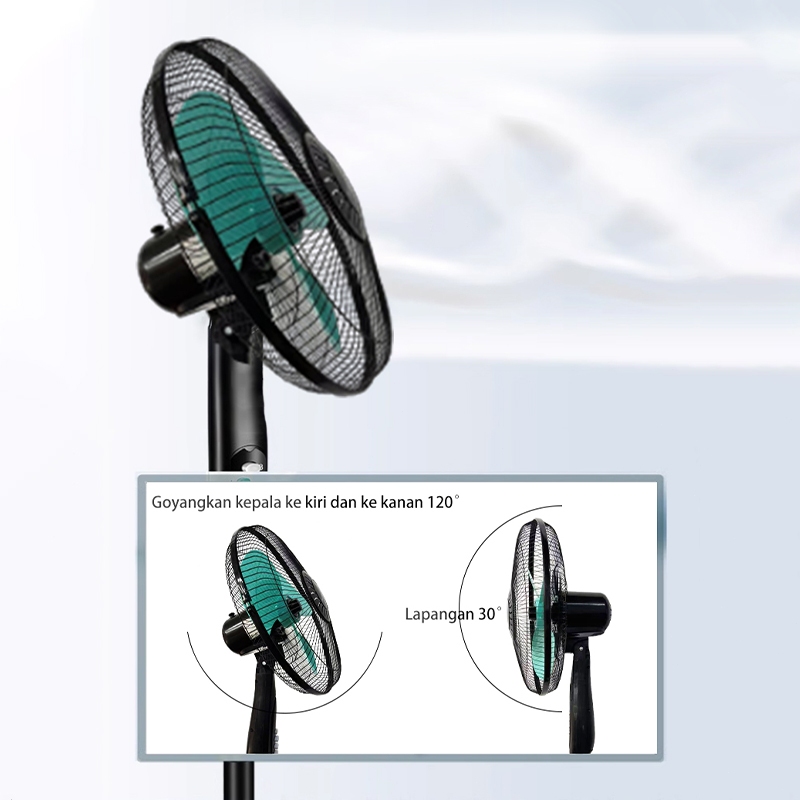 Kipas Angin Berdiri 16 Inch Angin Kencang 3 Tingkat Penyesuaian Hemat Energi Dan Senyap