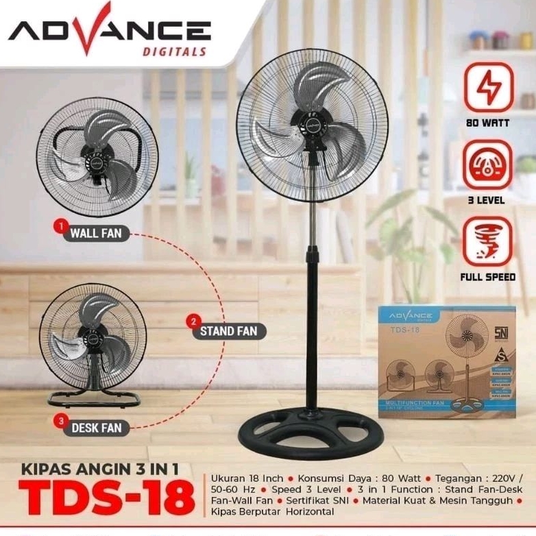 Kipas Angin Tornado Advance 3In1 18Inch Stand Wall Desk Fan