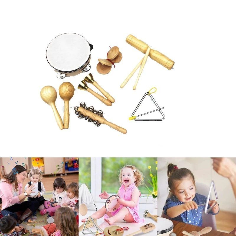 7pcs Alat Musik Drum Anak Alat Musik Tambourine Alat Musik Maracas Mainan Alat Musik Perkusi Hand Percussion Musical Ins