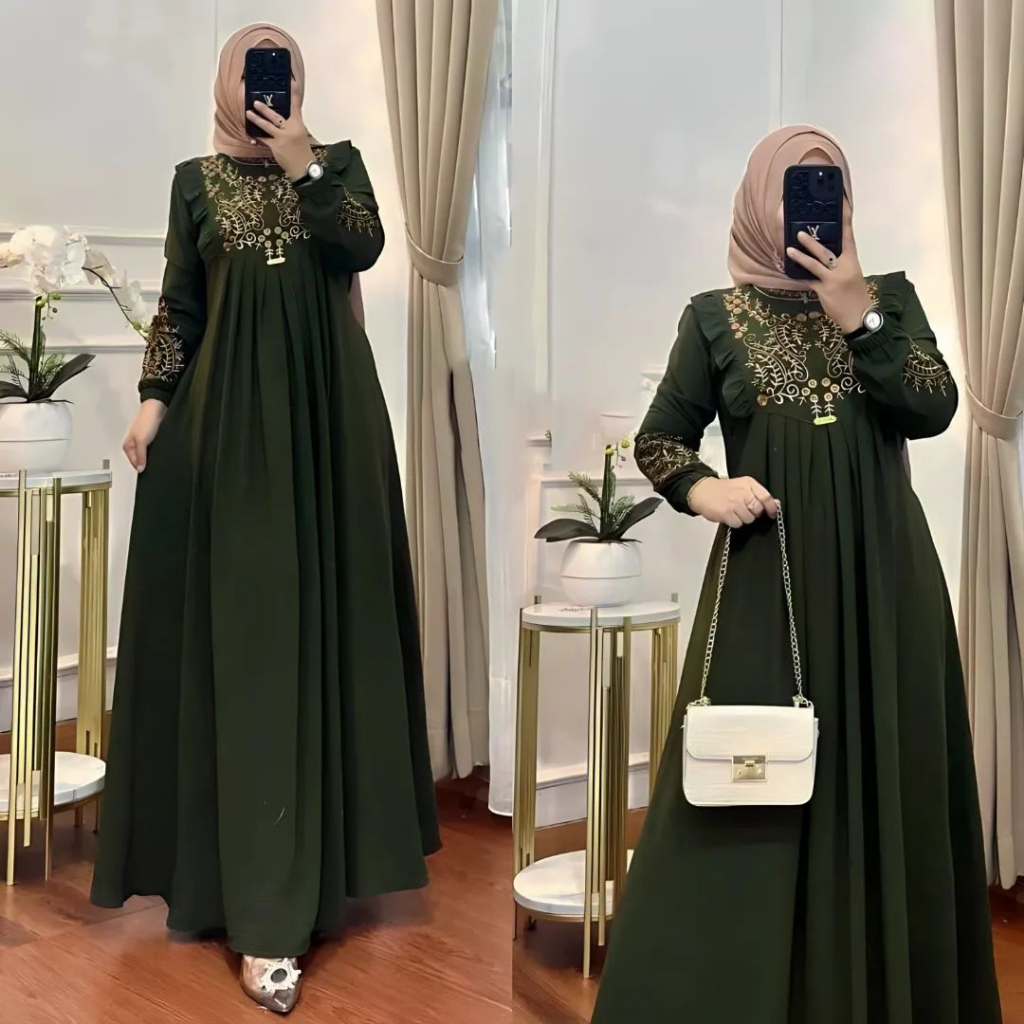 DP 0 Lunara Dress Cringkel Airflow Mix Bordir Tebaru 2025 Gamis Kekinian Lebaran Elegan