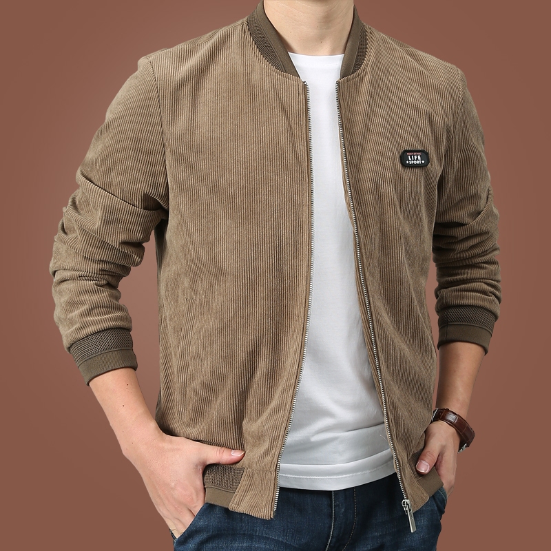 Jaket pria cokelat bahan corduroy Korean style casual fashion dewasa cowok lengan panjang jackets