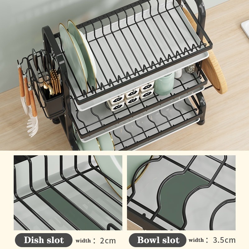 Rak Piring Stainless Steel Rak Cuci Piring Penyimpanan Dapur Muat Mangkuk Dan Piring