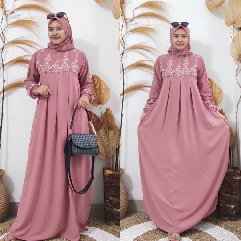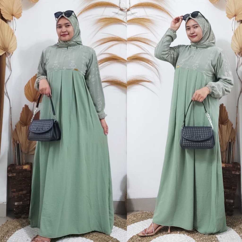 DP 0 Lula Dress Plus Hijab Bahan Cringkel Airflow Mix Ceruty Babydoll Motif Gamis Lebaran 2025