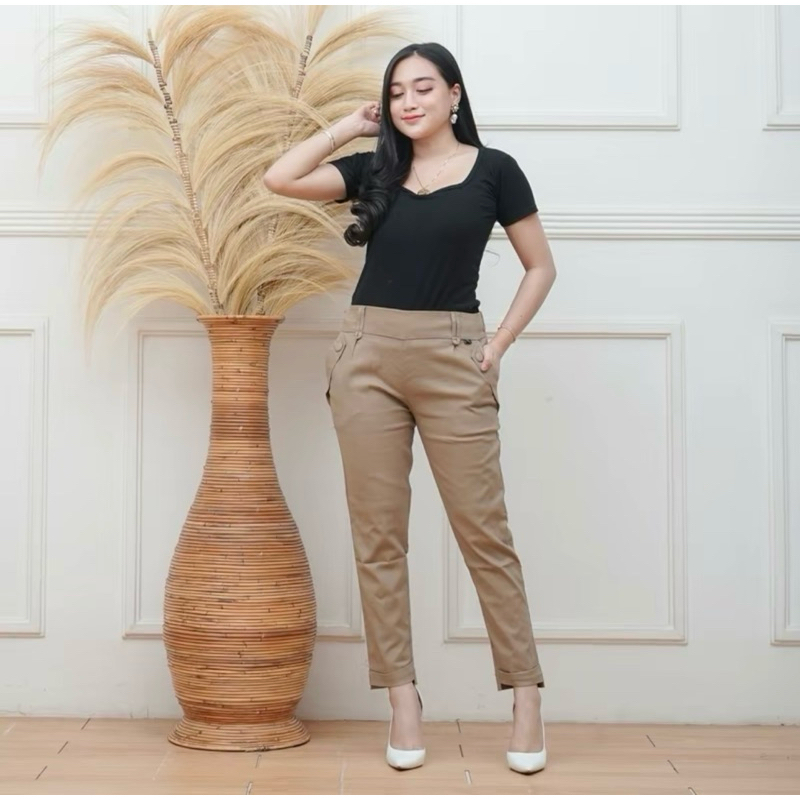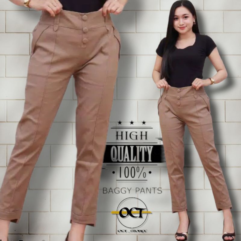 Celana Wanita Kasual Baggypants Promo Bahan Twill Combed Stretch Tebal dan Melar Size Standar Jumbo