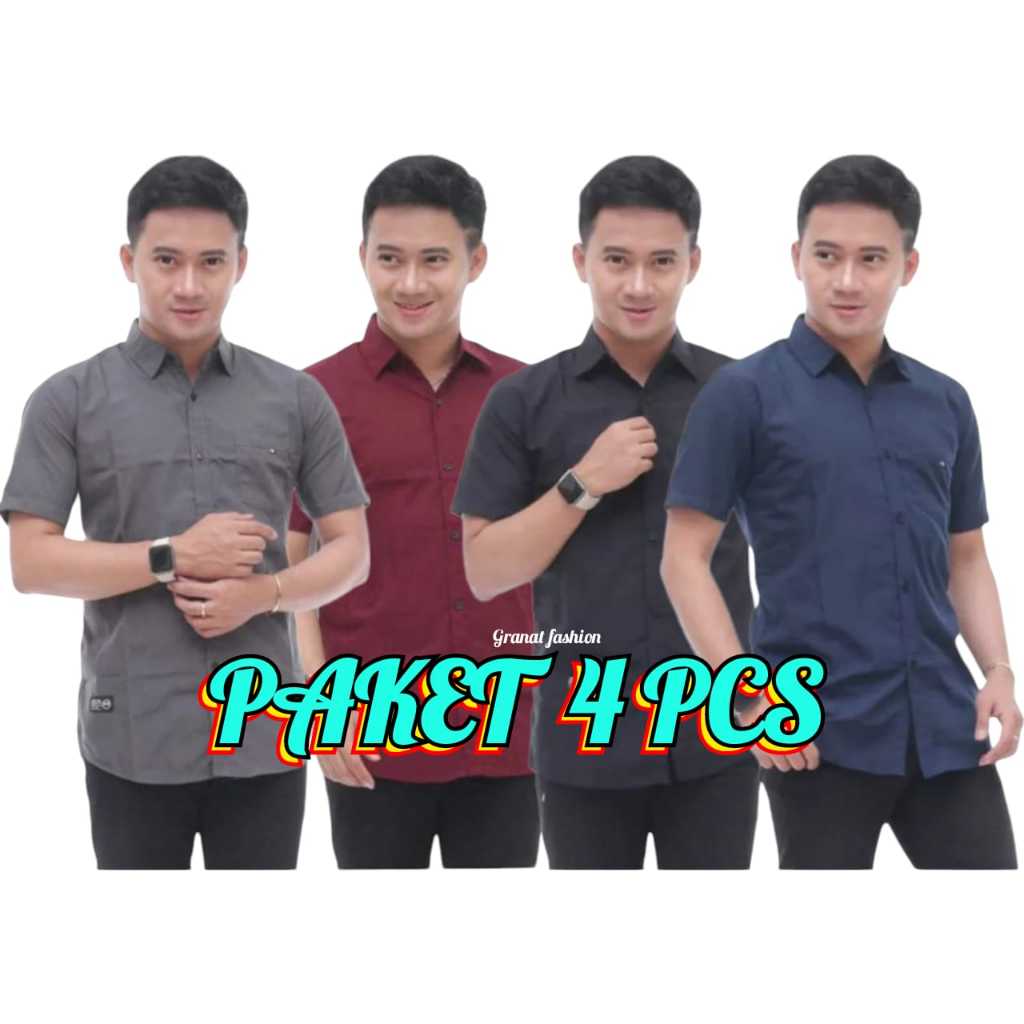 ⭐⭐⭐⭐⭐Paket 4 Pcs Kemeja Polos Lengan Pendek Pria Hem Cowok Slimfit Size M L XL XXL XXXL