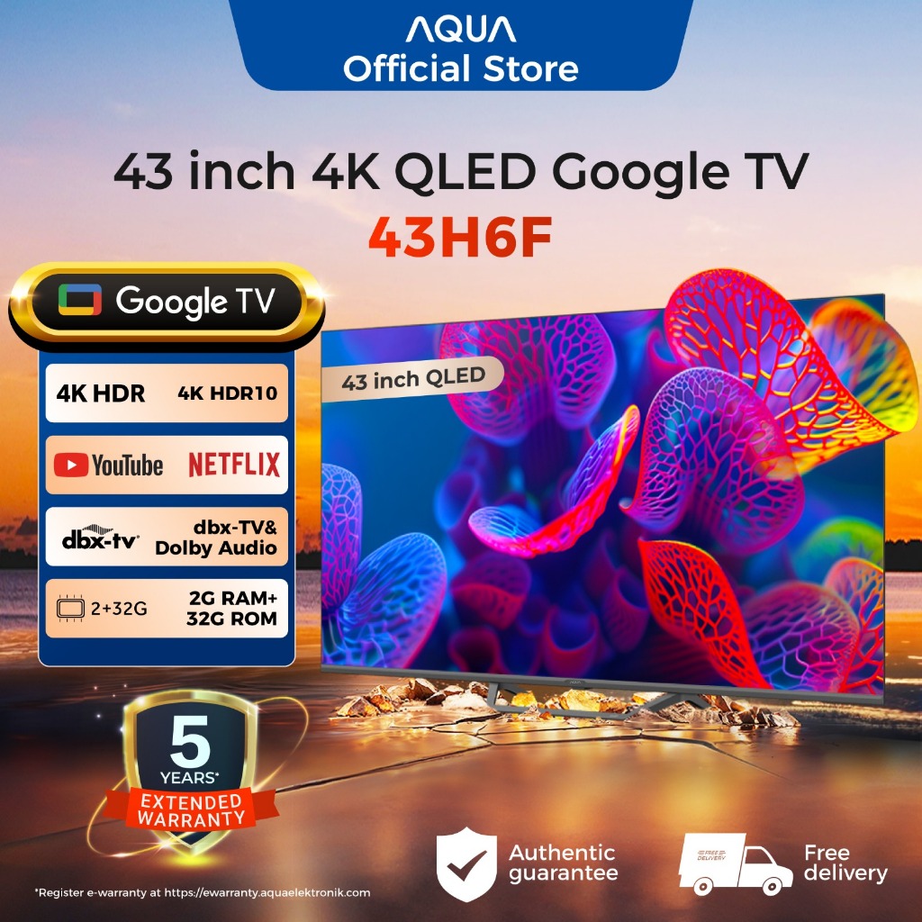 AQUA Elektronik TV 43H6F - 4K QLED - Google TV - ALLM - Google Play/Netflix/Youtube/Disney+Hotstar-RAM 2GB ROM 32GB - AI Smart TV