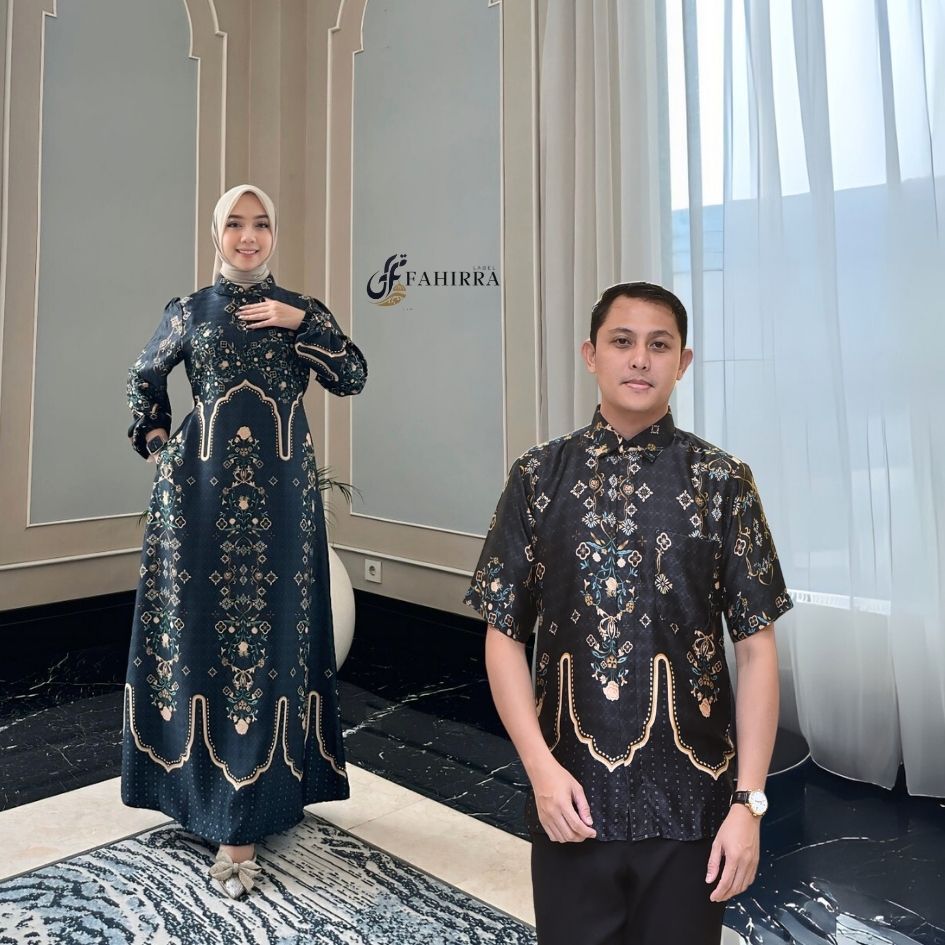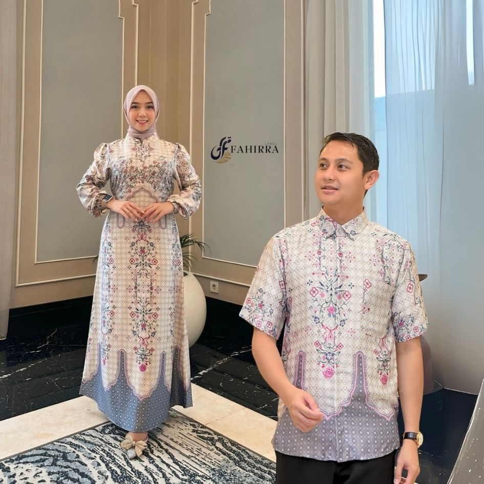DP 0 Baju Gamis Couple Kemeja SHABIRA Bahan Silk Premium Untuk Pesta Kondangan ukuran Jumbo Terbaru Murah