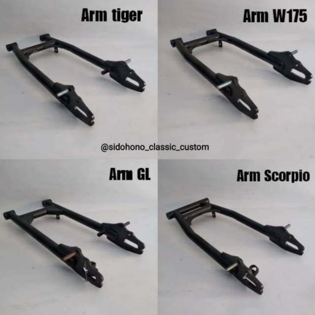 Swing Arm Custom Pipa GL Tiger Kawasaki W175 Scorpio Hitam