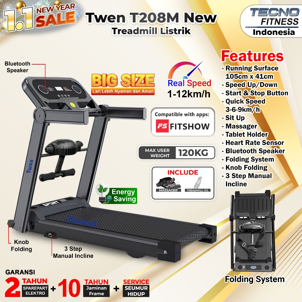 TWEN T205 New T208 New T205M New T208M New Treadmill Listrik Treadmill Portable Treadmill Multifungsi Treadmil Lipat Treadmill Electric Low Watt Alat Olahraga