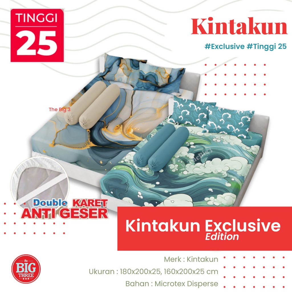 Thebig3 Kintakun Sprei 180X200 / 160X200 Tinggi 25 Cm Microtex Double Karet Digital Print Marmer