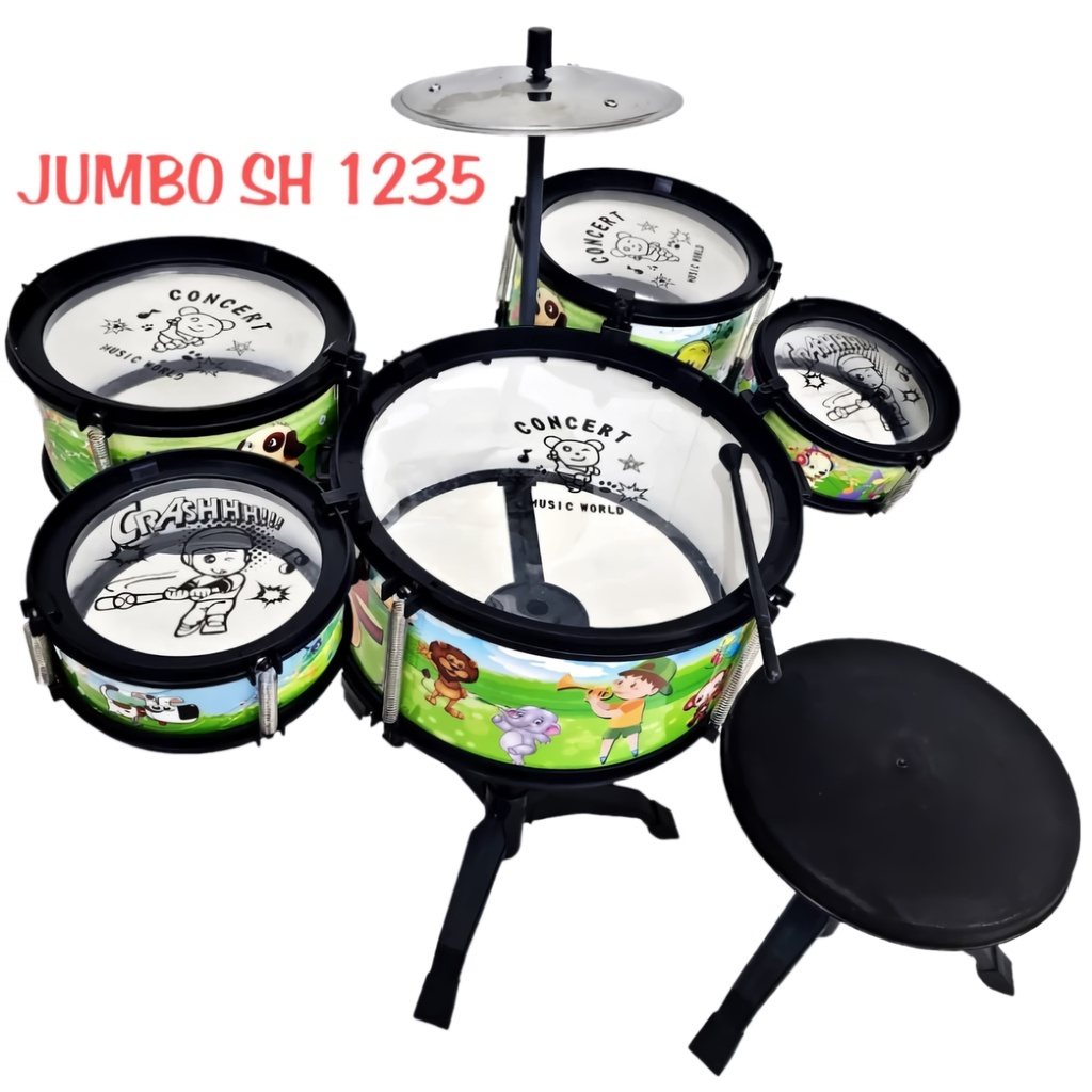 Mainan Jazz Drum Set Jumbo Isi 5 + Kursi SH 1235 / Mainan Drum / Mainan Musikal