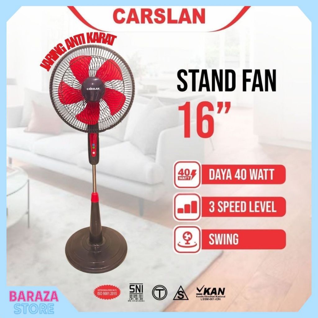 Kipas Angin Berdiri Carslan 16Inch 40Watt 3 Speed Hembusan Angin Kencang