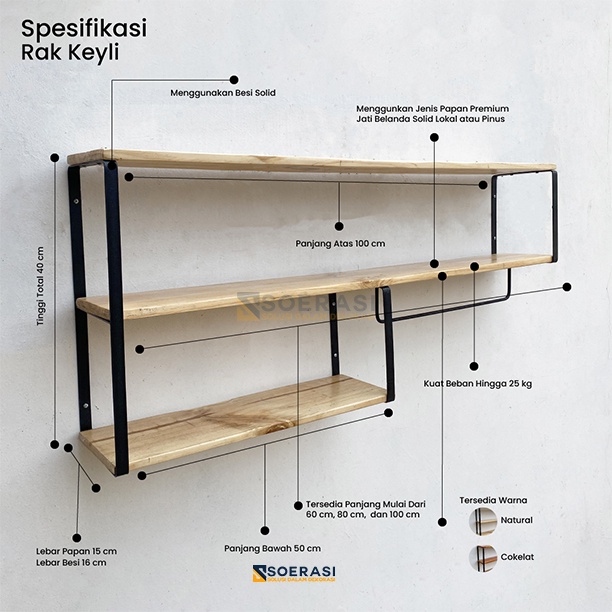 Soerasi Rak Dinding Keli Penyimpanan Serbaguna Dapur Kitchen Set Luas Tingkat Tempel Hiasan Vintage Ambalan Kayu Besi Ga