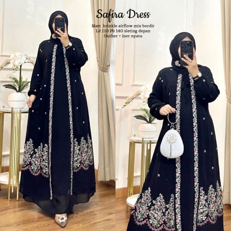 DP 0 Safira Dress Cringkel Airflow Mix Borir Gamis Lebaran 2026 Terbaru Untuk Wanita Remaja