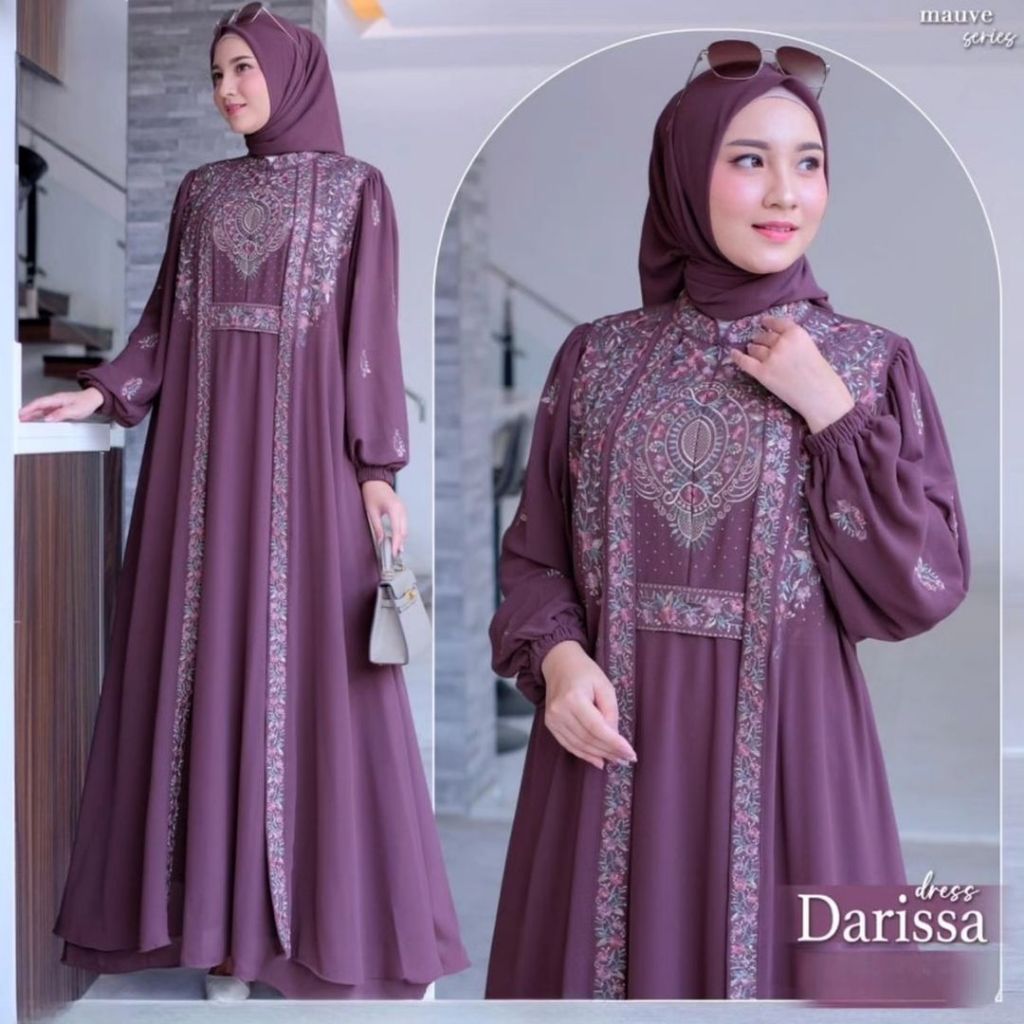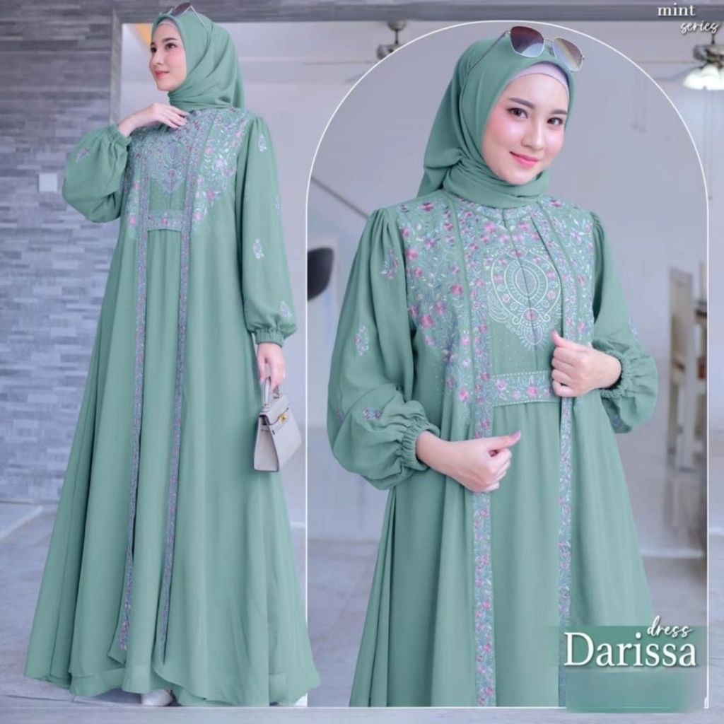 DP 0 Darissa Dress Cantik Mewah Ceruty Babydoll Mix Bordir Gamis Kondangan 2026 Elegant Ukuran MLXL DAN XXL