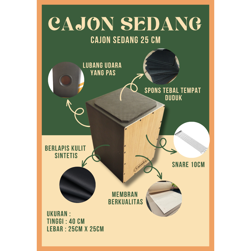 Alat Musik Cajon Sedang - Kajon Drum Box Latihan - Snare Drum Akustik