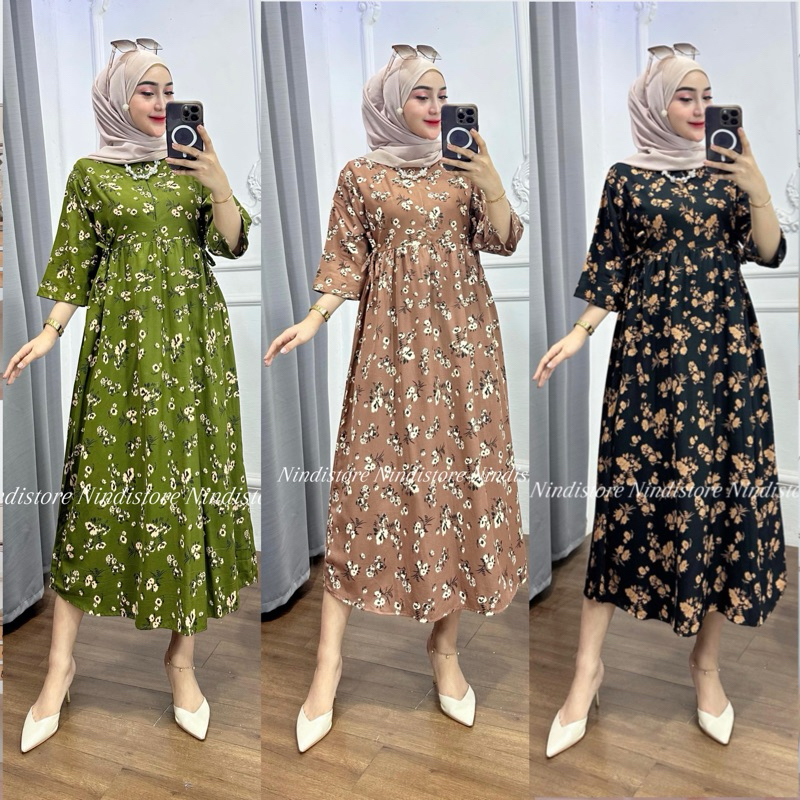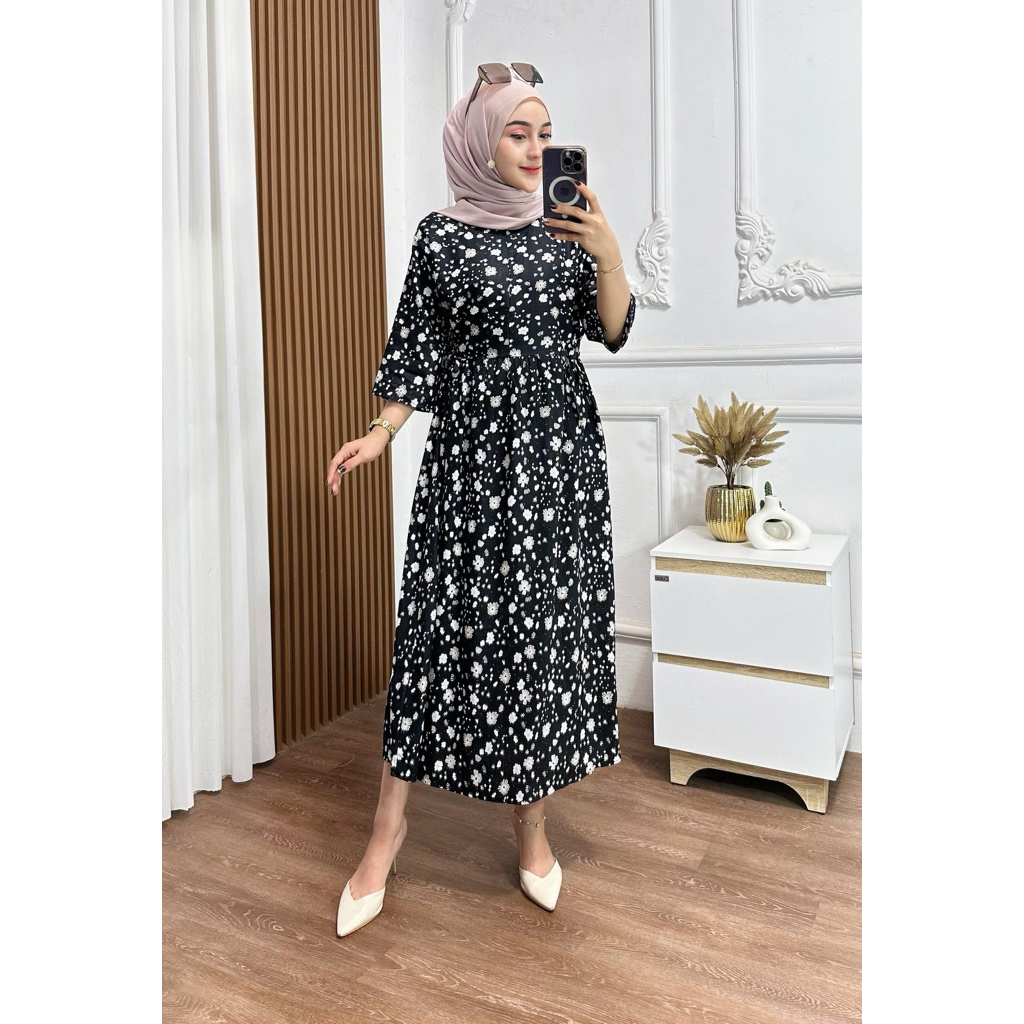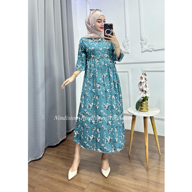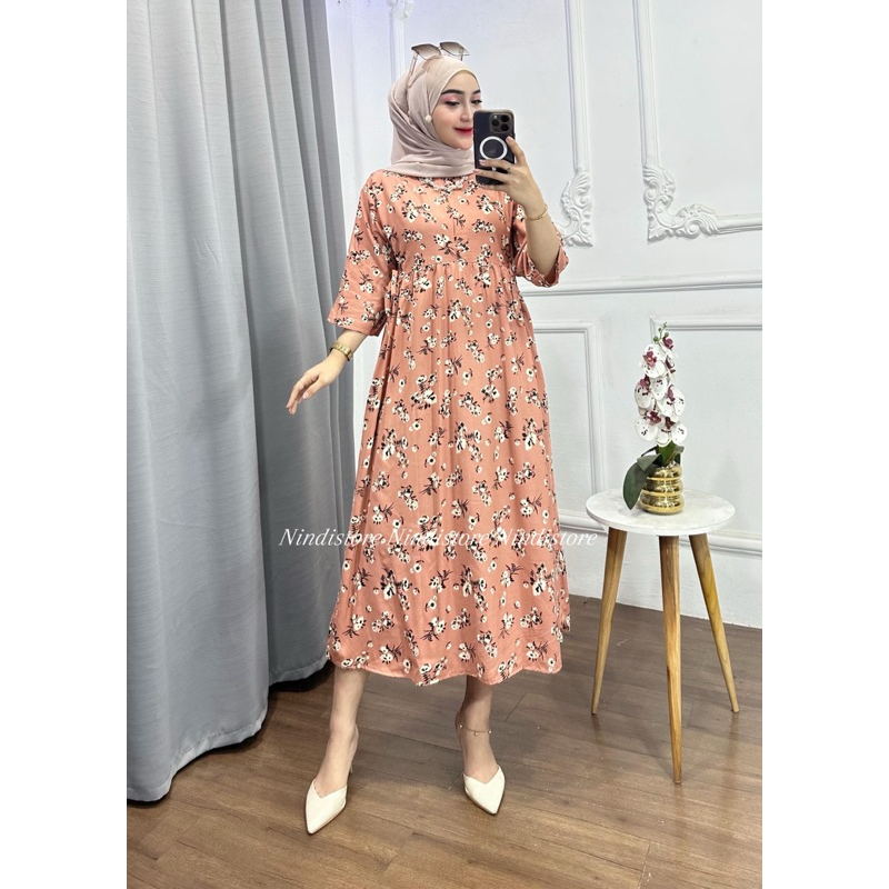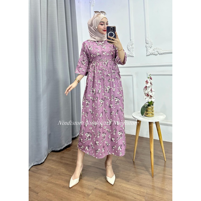 Dress Miranda Rayon Lengan 3/4 / Daster Rayon Motif Bunga / Midi Dress Busui