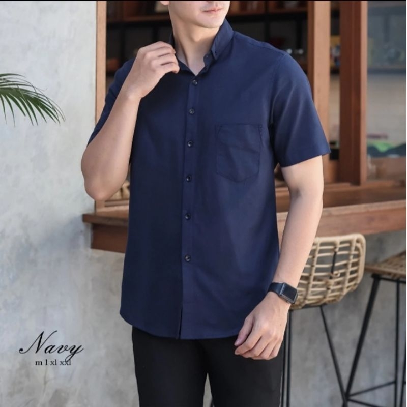 Kemeja Pria Polos Lengan Pendek Slimfit Formal Casual Distro Distro Premium Seri l9880
