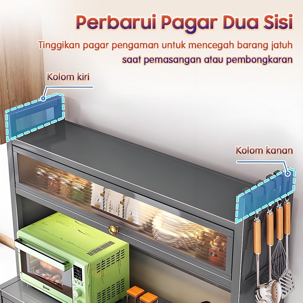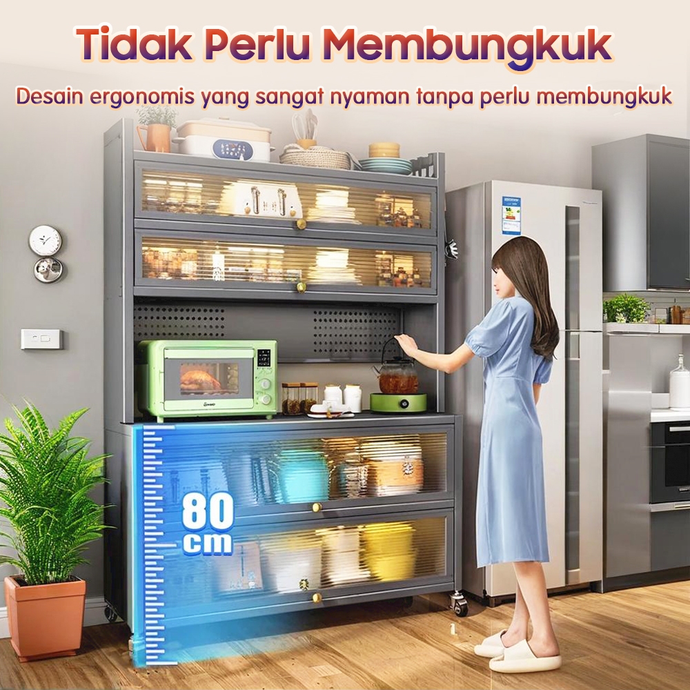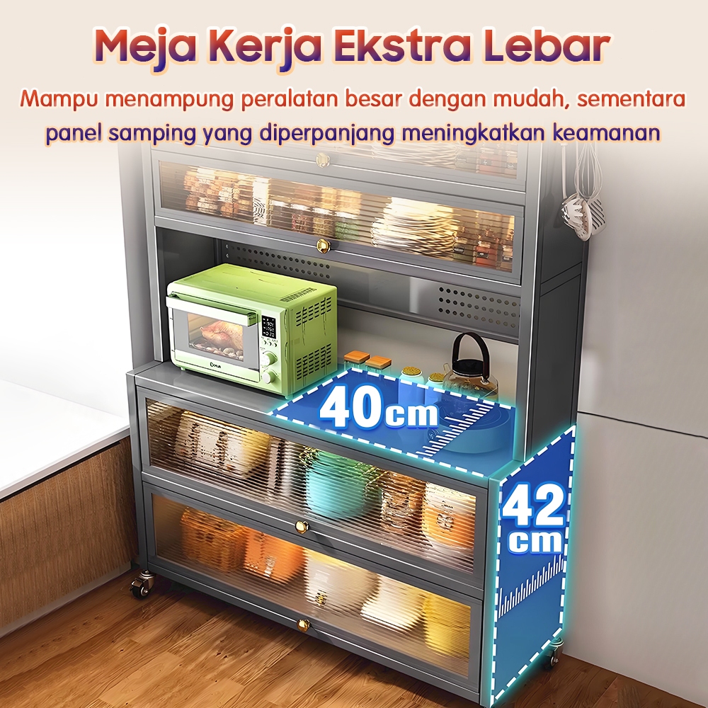 Lemari Dapur Minimalis Rak Dapur Serbaguna Rak Penyimpanan Dapur Rak Piring Oven Microwave Dengan Roda Pintu