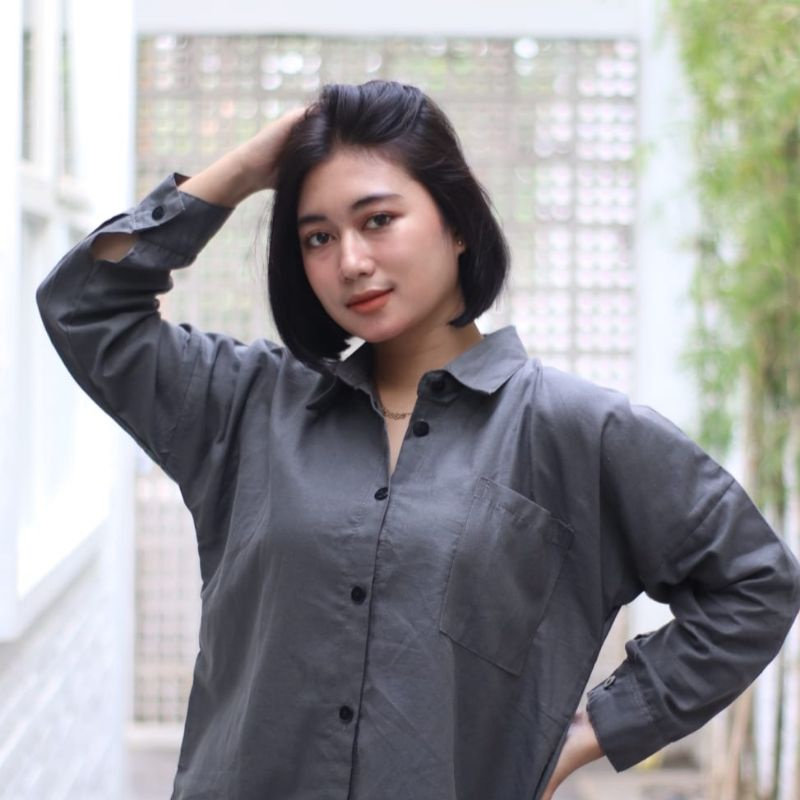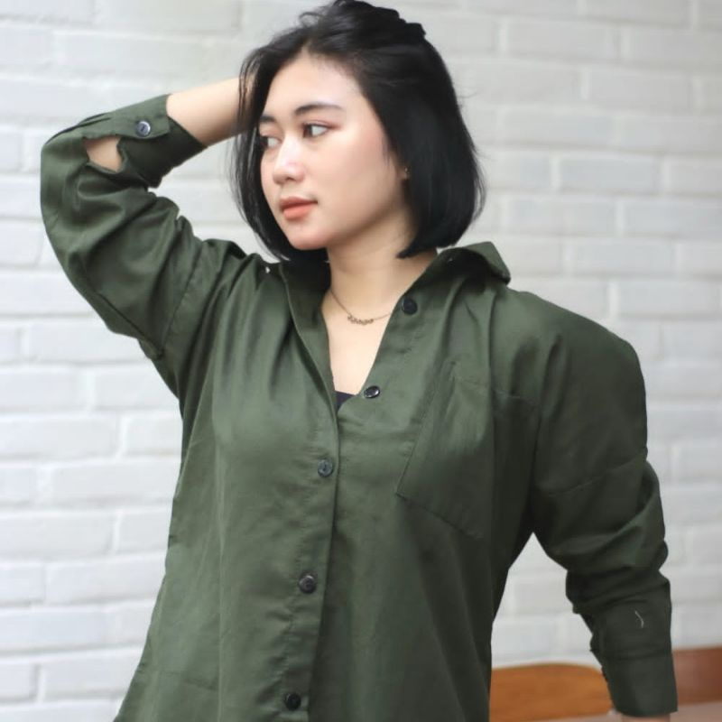 Kemeja Wanita Linen Oversize Olivia Shirt Linen Pocket