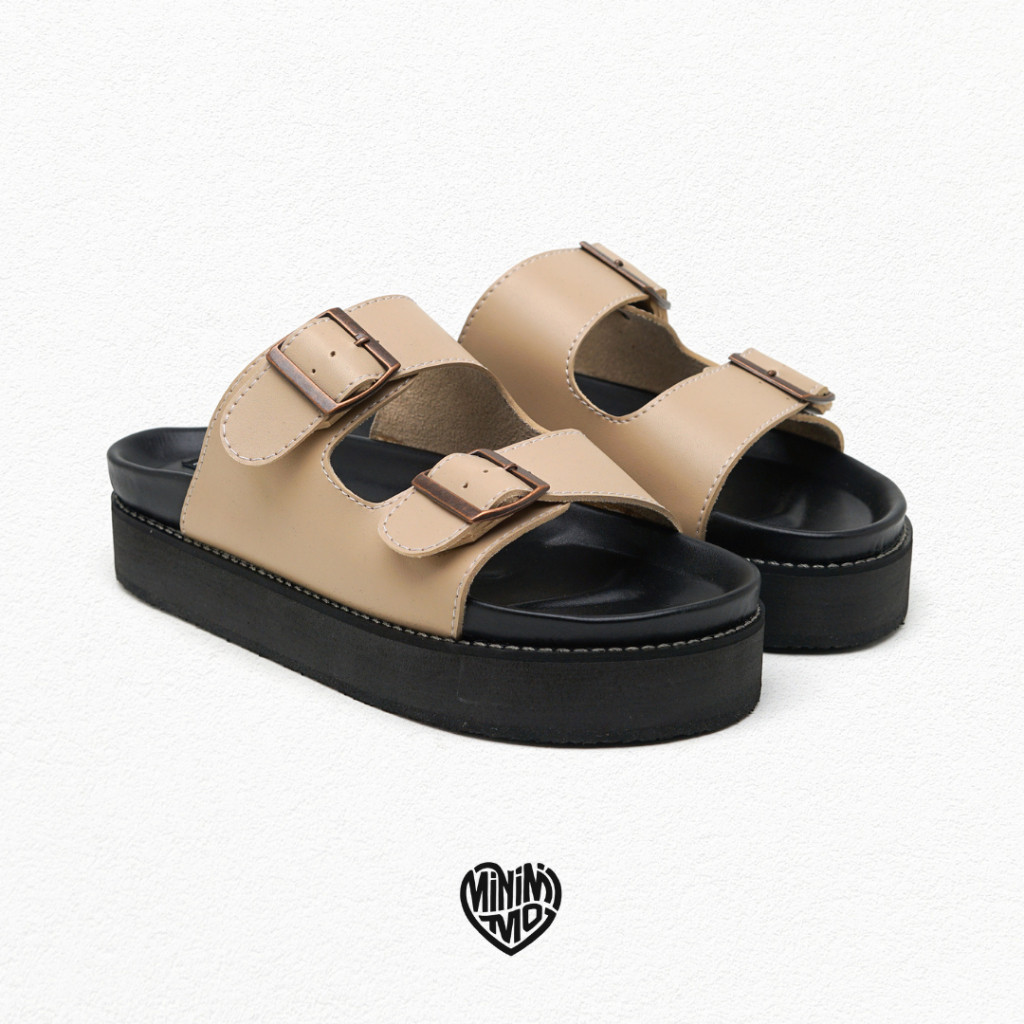 Minimimo Sandal Platform Kulit Casual Wanita Anti Slip Haura Maroon