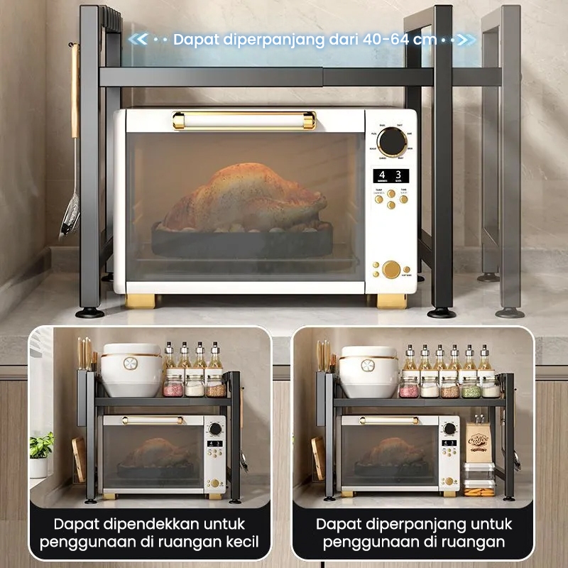 Rak Microwave Oven Rak Bumbu Dapur Rak Penyimpanan Serbaguna Portable Rak Panci Rak Rumah Tangga Dapat Diregangkan