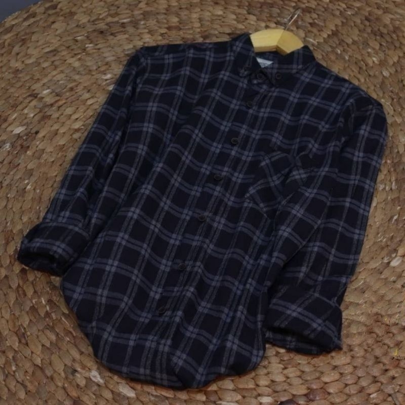 PROMO⚡Kemeja Flanel Pria [MOTIF SULTAN] Lengan Panjang Distro (Ori) Motif Flanel Kotak Kotak / Hem Flanel Abu List Hitam