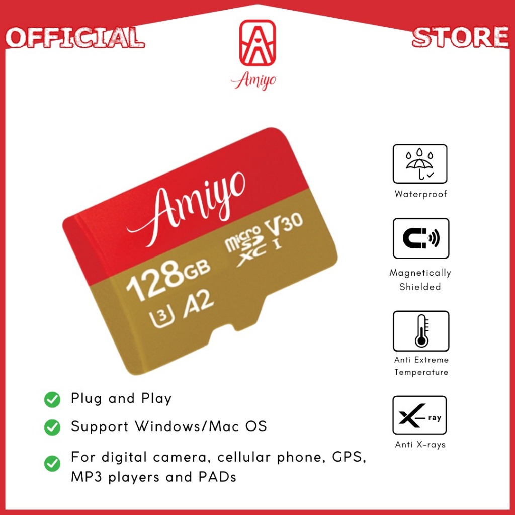AMIYO SMART CARD MEMORY SPEED FLASH 128 GB V30 A2 FOR SMARTPHONE TABLET CAMERA PSP ANTI X-RAY