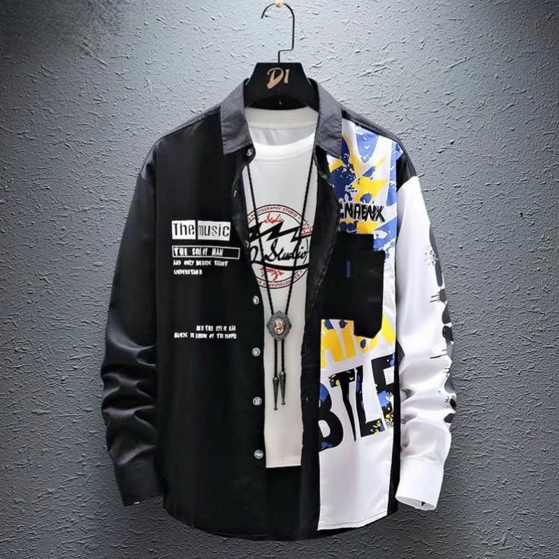 Kemeja Kayser Pria MUSE Lengan Panjang Motif Sablon ada Kantong depan Asli