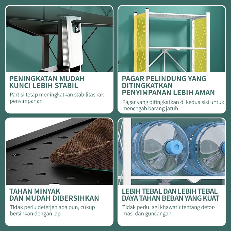 Yonezawarak Dapur Rak Lipat Dengan Roda Rak Besi Siku 5 Susun Rak Peralatan Rak Bumbu Multi-Fungsi Rak Dapur Susun Rak O