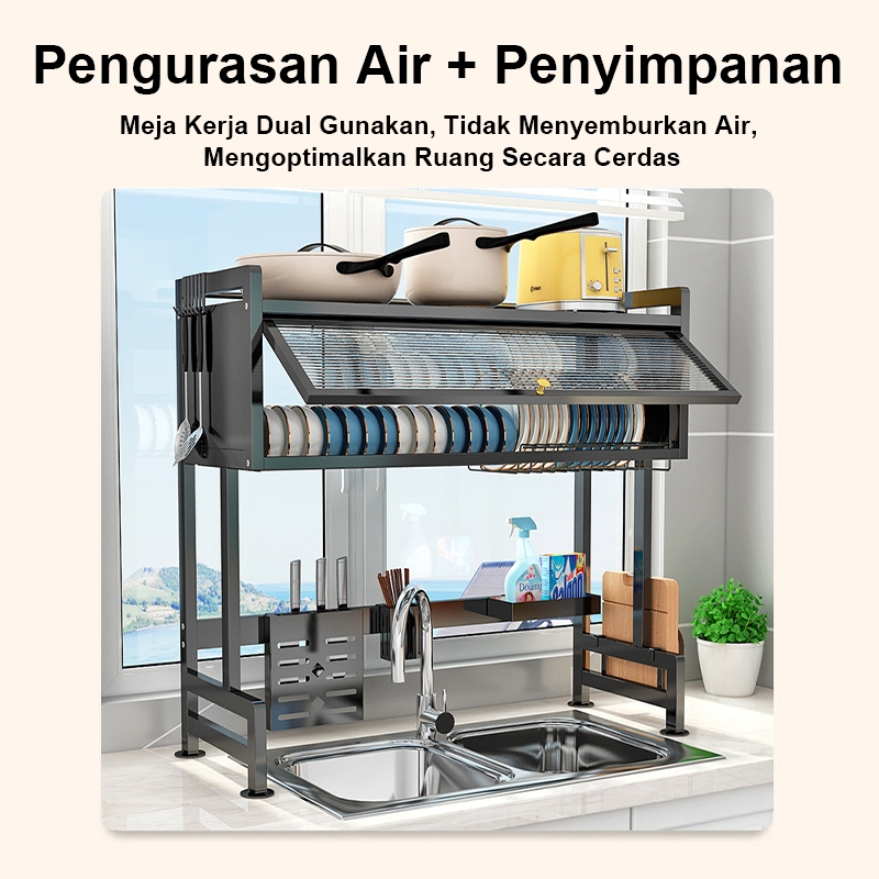 Rak Piring Tertutup Rak Piring Wastafel With Cover Stainless Steel Rak Dapur Rak Piring Gantung Cuci Piring Wastafel