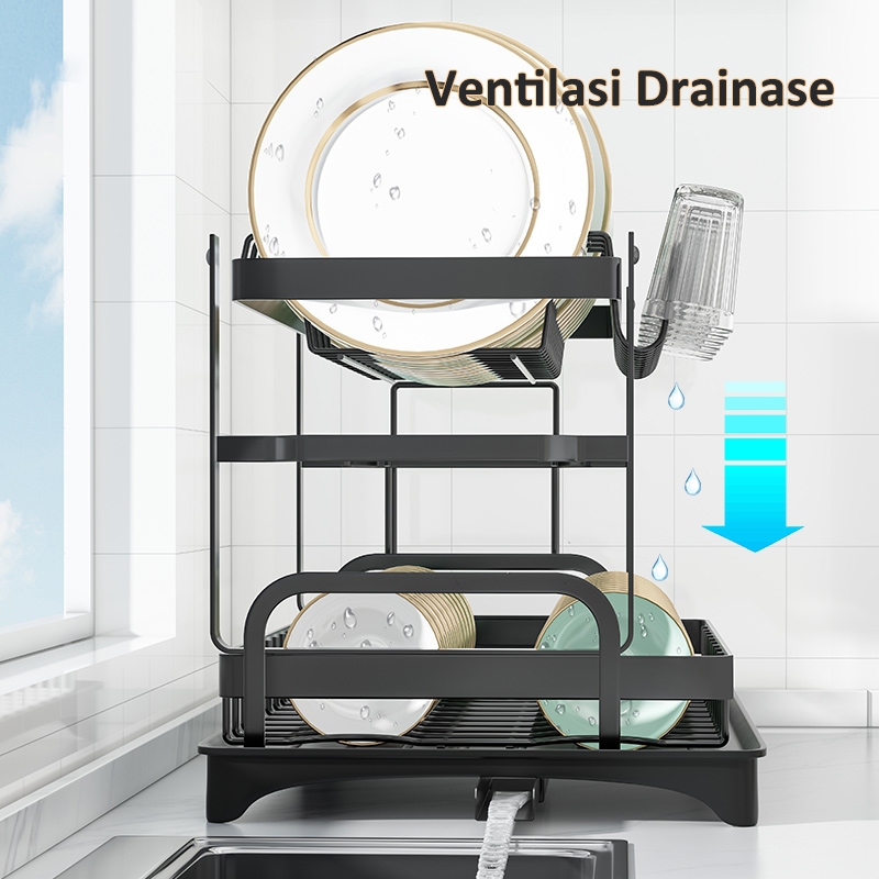 Ispecle [Tidak Memerlukan Instalasi] Rak Piring Dapur Stainless Steel Penyimpanan Rak Pengering Piring Rak Mangkuk Pirin