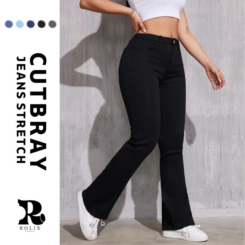Celana Jeans Cutbray Wanita Melar Highwaist ROLIX Cutbray Jeans Wanita Stretch