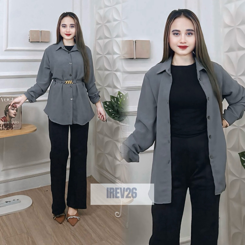 kemeja Wanita Polos Motif Rantai Lengan Balon Korean Style MELDA M L XL