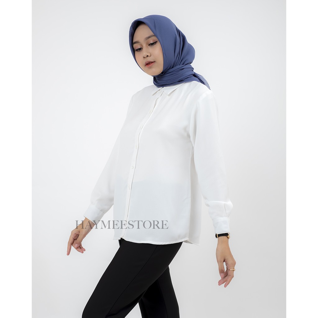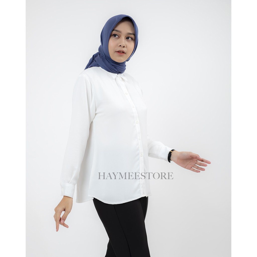 HaymeeIDN - Kemeja Putih Polos Wanita Baju Kantor Cewek Formal Atasan Kerja cewe Bahan Moscrape