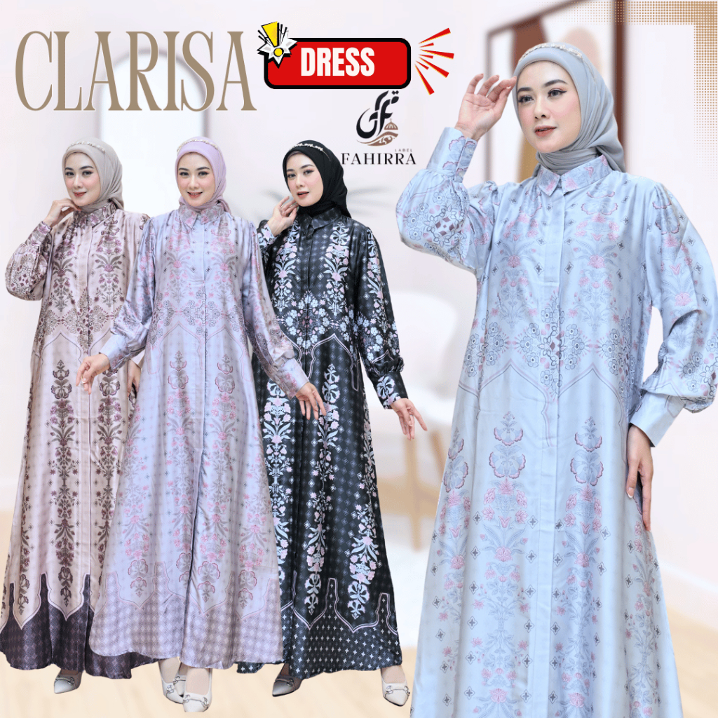 DP 0 Dress CLARISA Bahan Arabian Silk Premium Motif Bunga Elegan Kancing Depan dan Lengan Terbaru 2025
